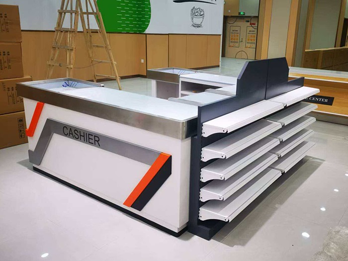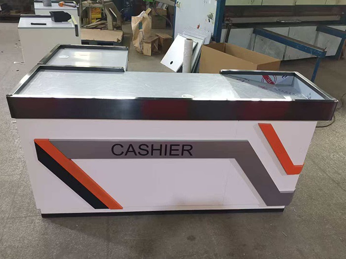 A standalone cashier counter suitable for small to medium-sized supermarkets and grocery stores.