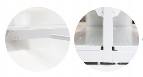- The inclined back panel improves product visibility from the aisle, helping customers identify products more easily.